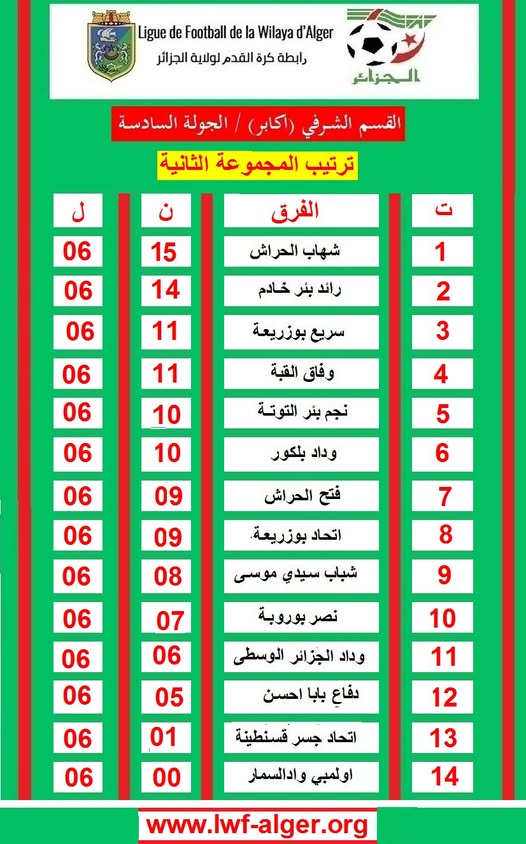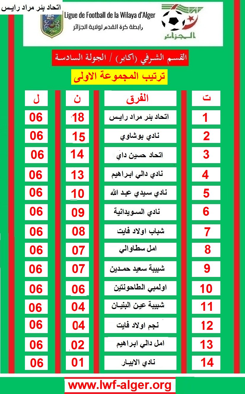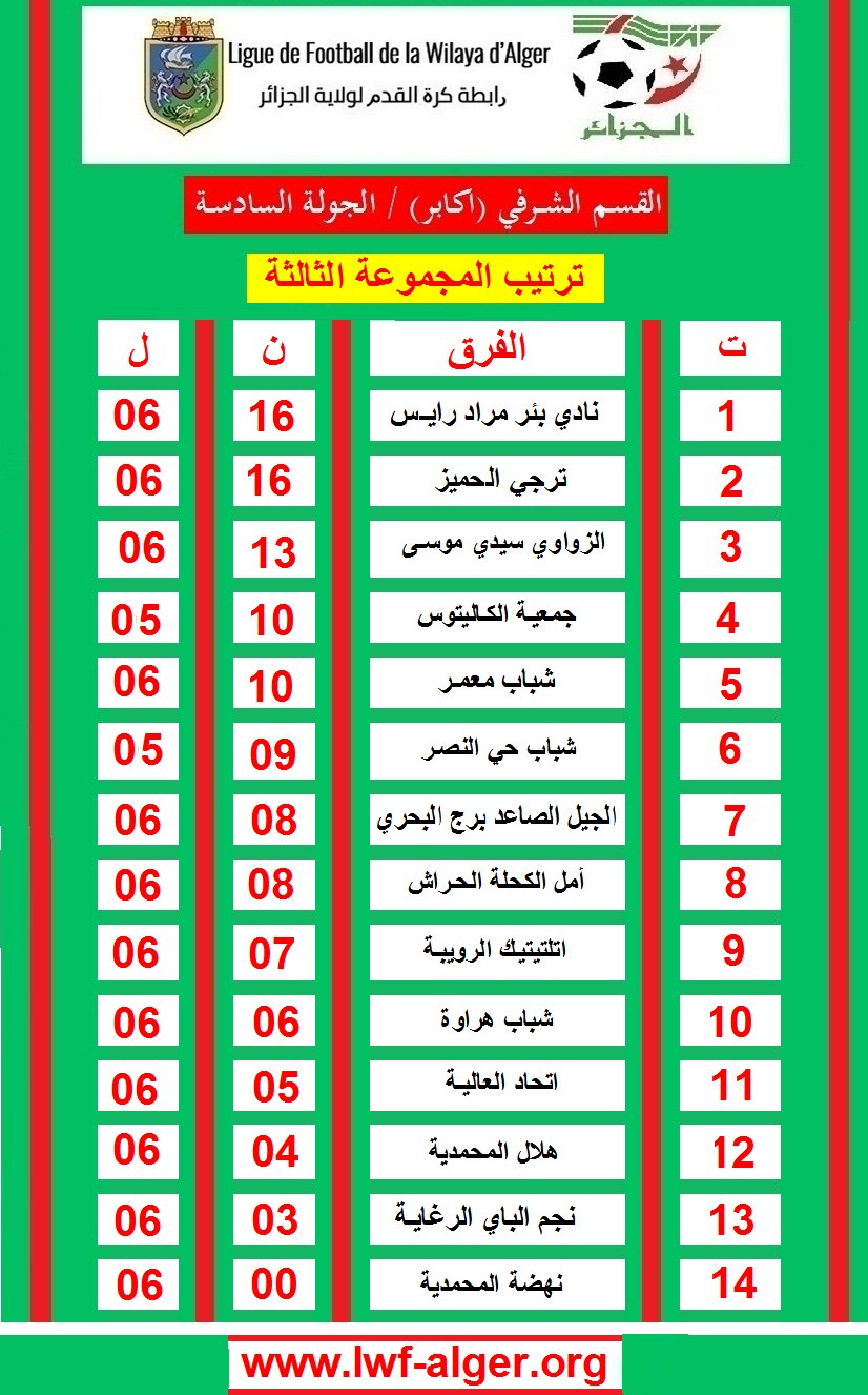القسم الشرفي (الجولة السادسة): ترتيب المجموعات الثلاثة