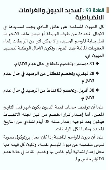 المادة 93: تسديد الديون والغرامات الانضباطية